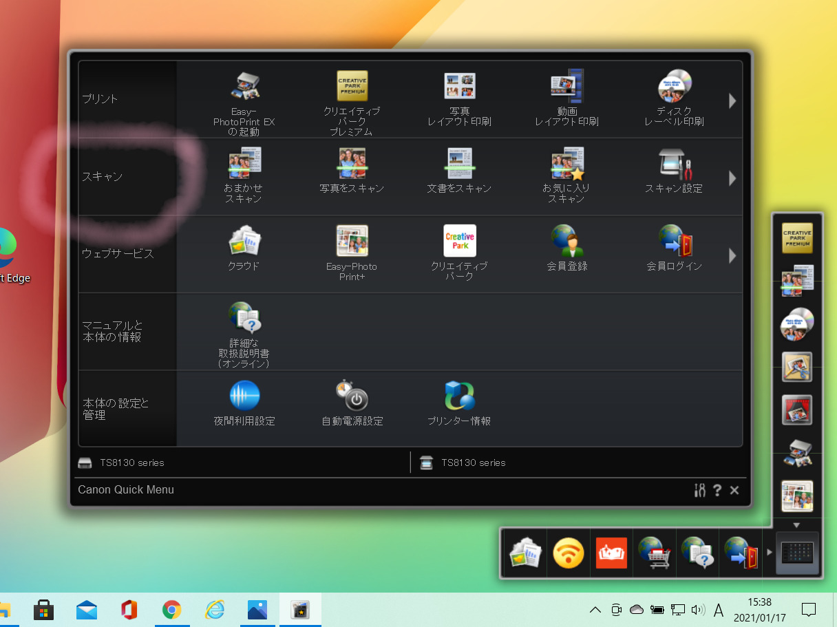 Canon Quick MenuというL字のバーがPCのデスクトップ上に現れました。