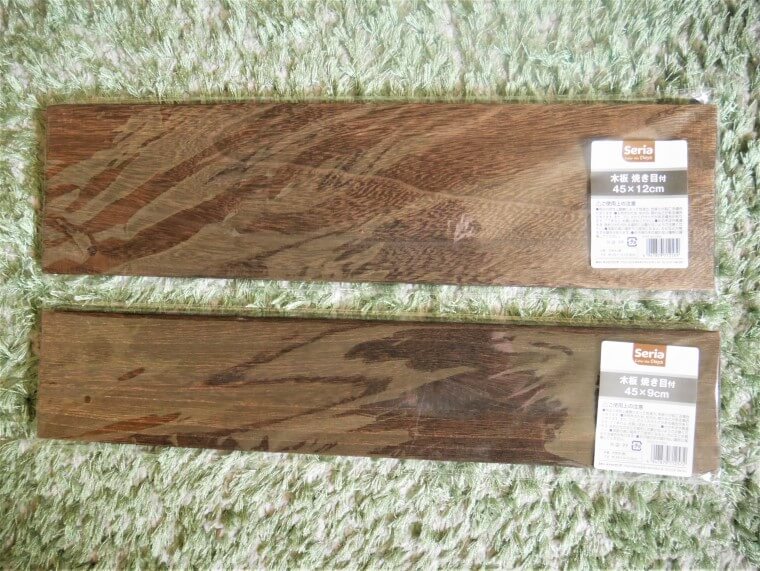 市販品ではちょうどよいサイズの板を探すのがむずかしいので、いつものようにセリア板を組み合わせることにしました。