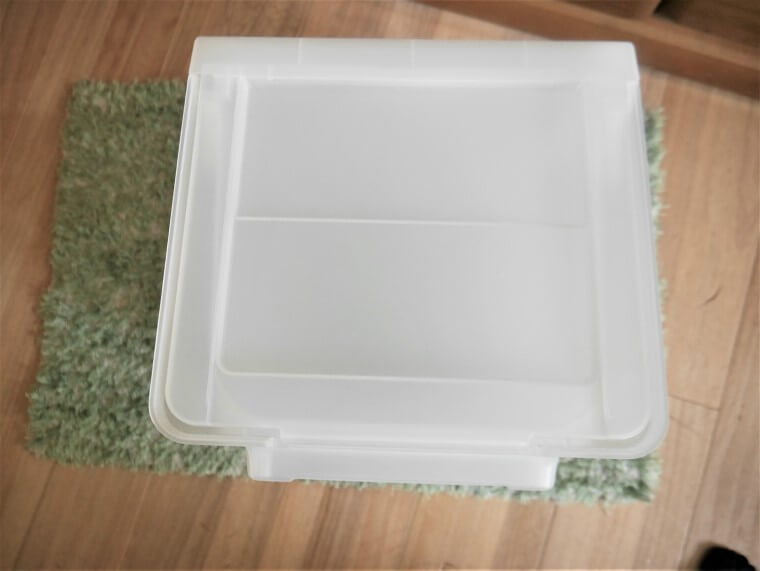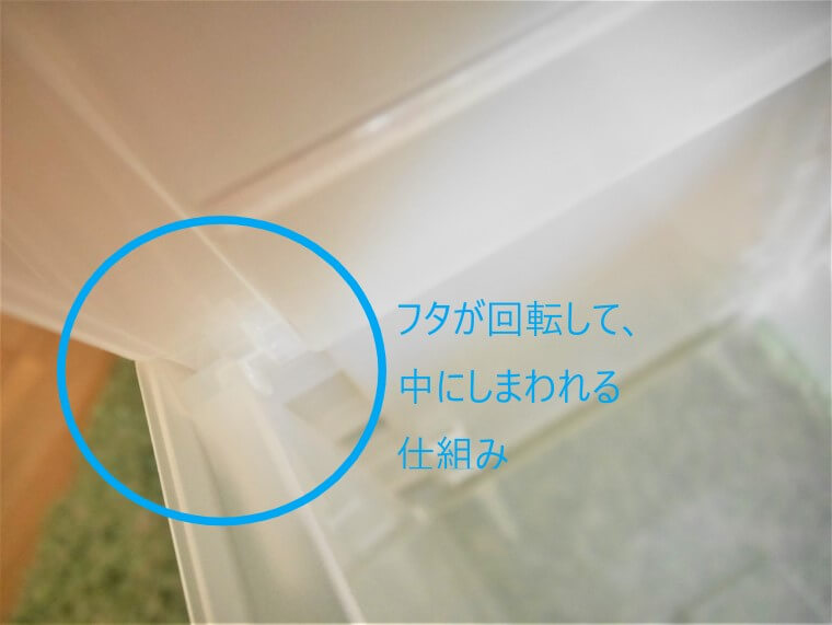 ふたが落ちずに入るように、衣装ケースにレール的な溝があります。