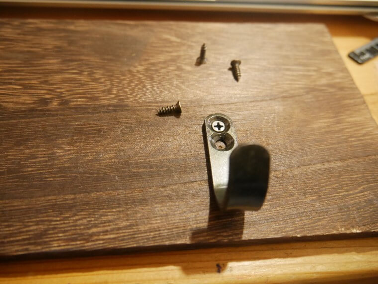 ねじ付属品長さ15~16㎜だと0.9㎜厚を貫通してしまうため、長さ10㎜前後の手持ち木ネジを取りつけました。