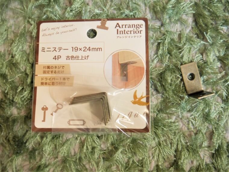 セリアにこだわる必要はないと思いつつ、市販品金具でこの色で、このサイズ感の金具が、百円前後で4つ手に入ることがなかなかないので…。