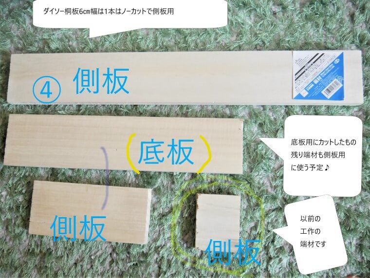ノーカットの同サイズダイソー板材が在庫を切らしたので、端材を利用したんです。