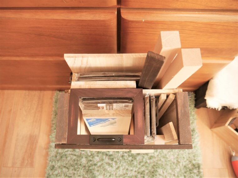 今回は、自分がふだんよく使用する、百均板材ほか専用にDIYした収納で、木材管理がラクになりました。