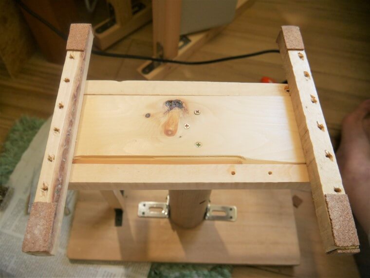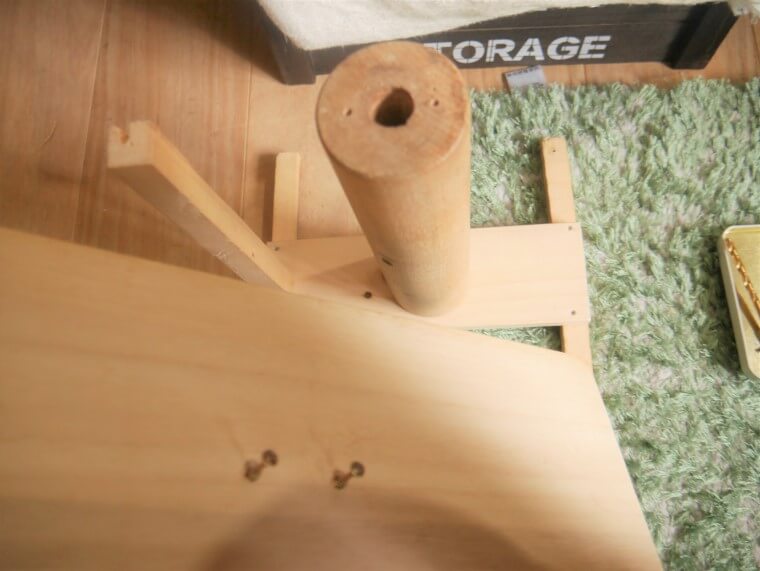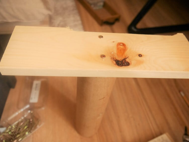 ビス頭埋め込み用の下穴を開け忘れ、頭が少し飛び出、土台がぐらつくことに気づきました…。