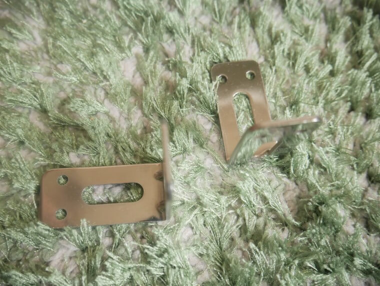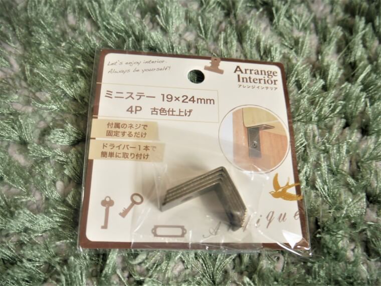 天板裏側の支柱①に補強用ダイソーの金折と、支柱②にセリアのミニステー(古色仕上げ)を取り付け。