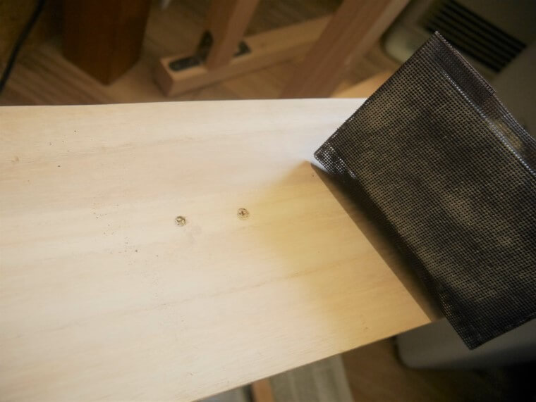 頭が一つ分飛び出る状態は、抑えられました。木ダボで埋めていないので天板にビスが丸見え、あまり美しくはありませんが。