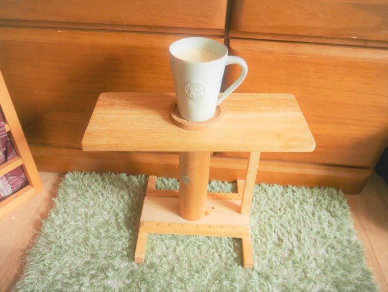 高さや広さはいらないちょい置き用だけれども、小さくてもお茶など水物を置くため、土台ががたつかない必要がありました。