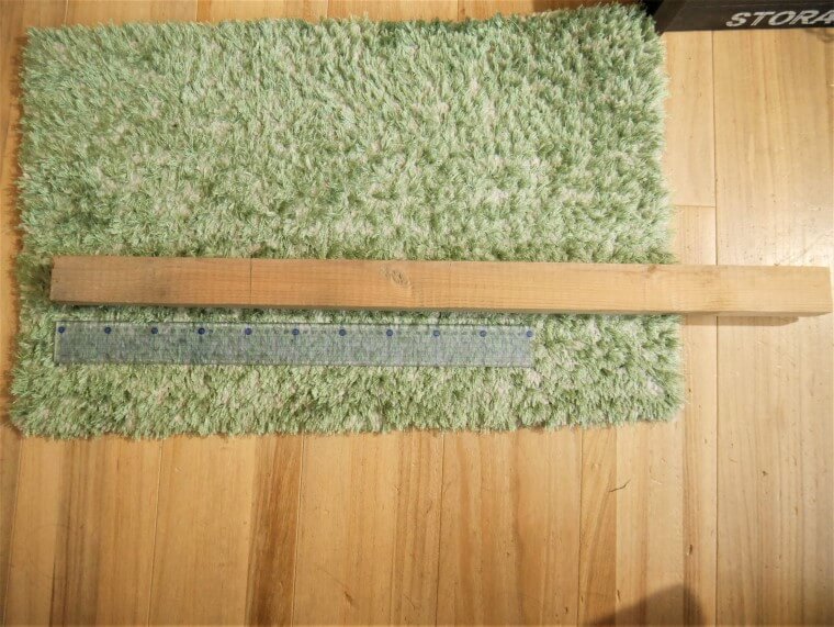 「床から10㎝ほど浮いた作業台があったら便利なのに…。」と端材板の上で切りながら思いつつ、部屋でかがみこんでカット作業するため、「足をのせる作業台が高すぎてもつらい」とも思うのです。