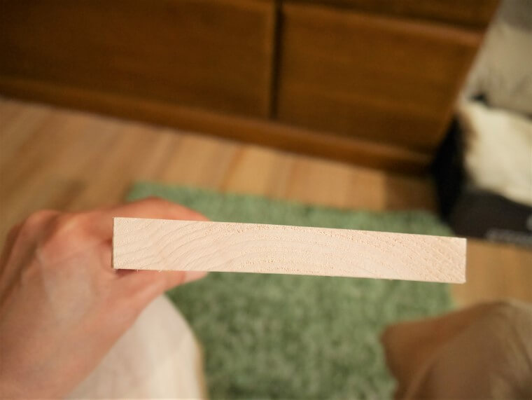 百均ひのき材は裏表のどこかに節のあるものが多いです。ビス位置にかからないかチェックを!