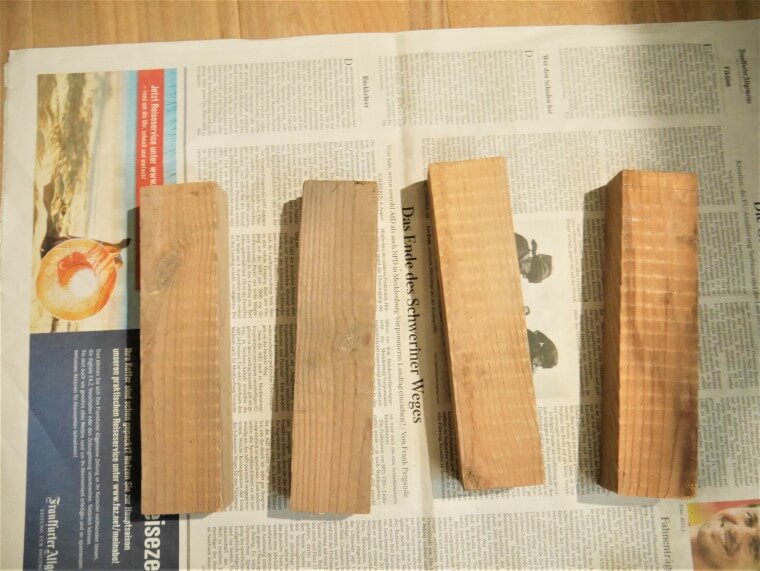 足用廃材を軽くサンドペーパーで汚れを落としたら、長さ81.8㎝を等分カットで4つにします。