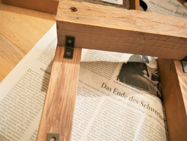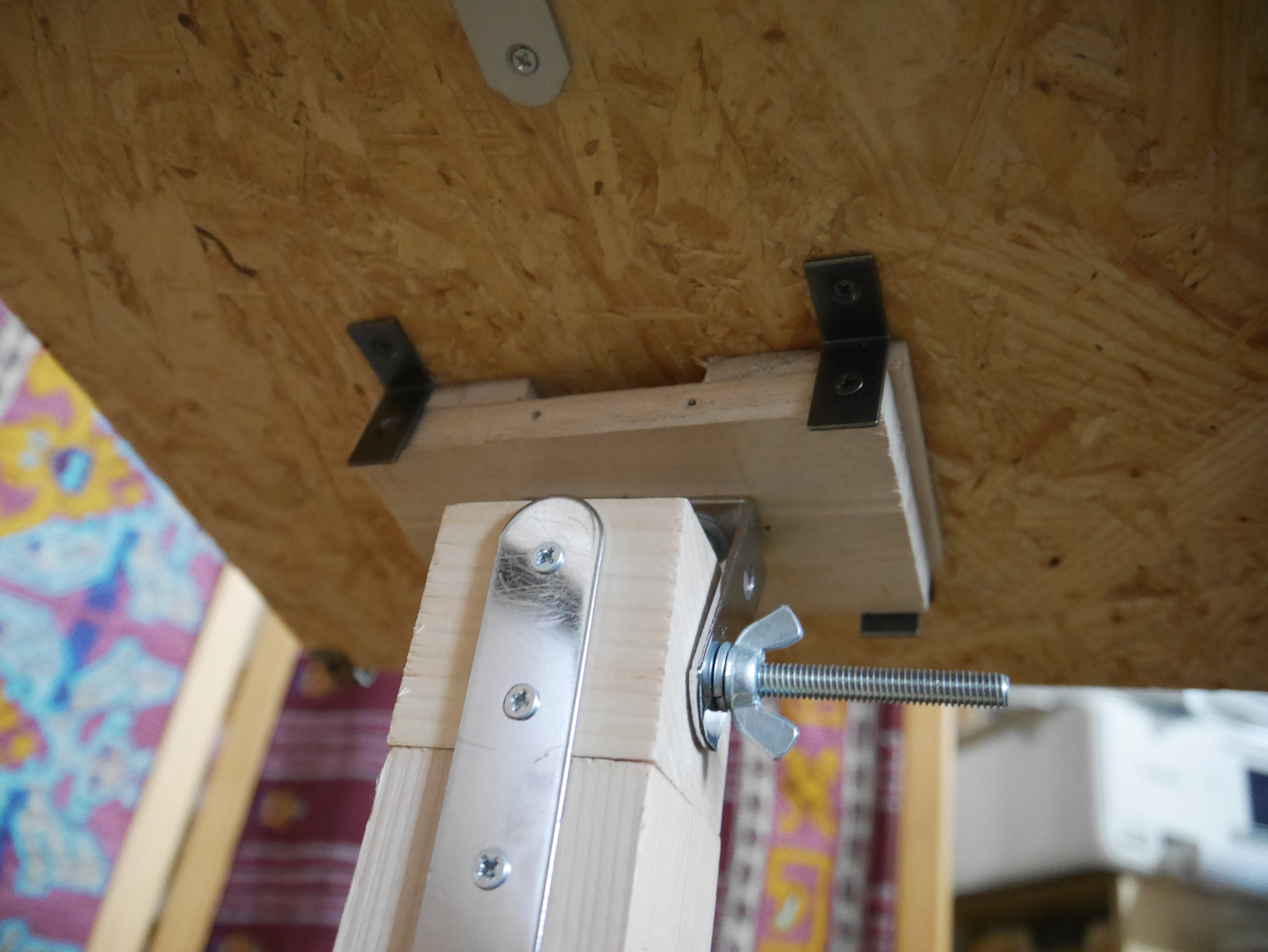 書見台diyでは、支柱に取り付けた角度調整のための木材と天板をミニステーで固定しております。