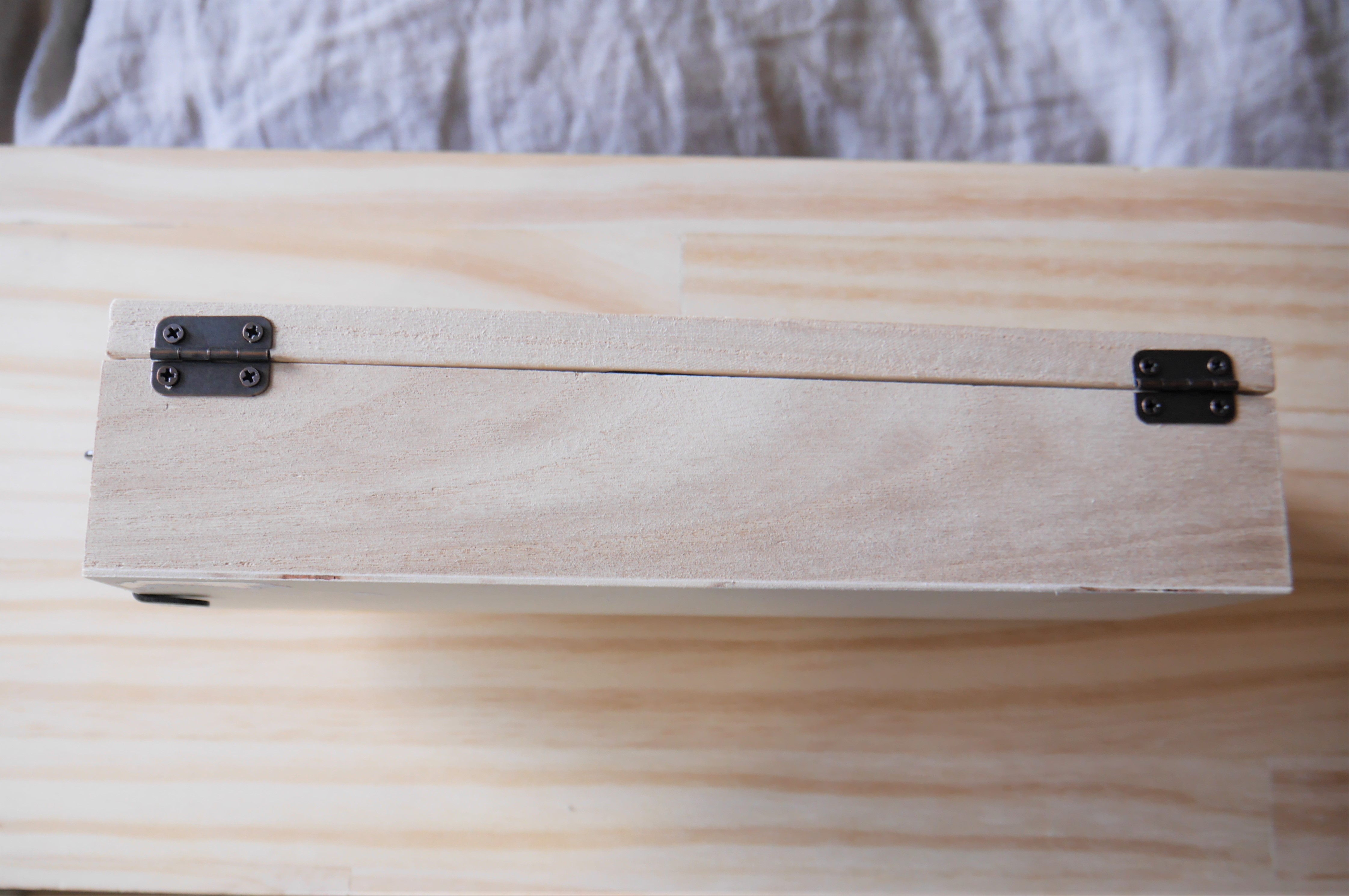 セリアの桐箱を、彫刻刀入れにするため、ふたを取りつけたときにも使用しています。