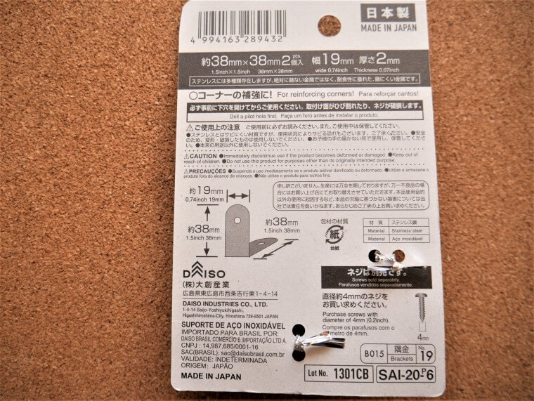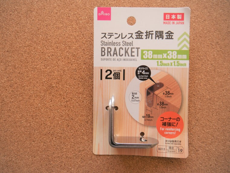 リーズナブルに2個入りで、家具のコーナー補強や連結に、ダイソー金具はうってつけです。