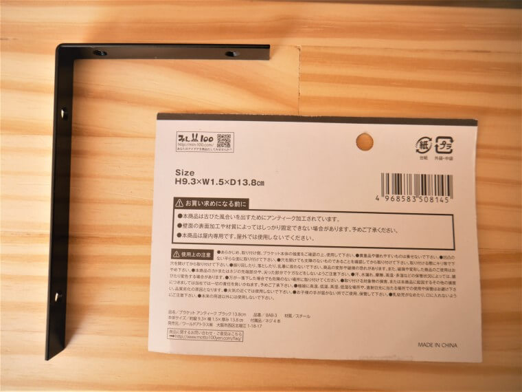 ブラケットは基本、棚受け金具。簡単に壁面収納を作る用途に使われるもの。