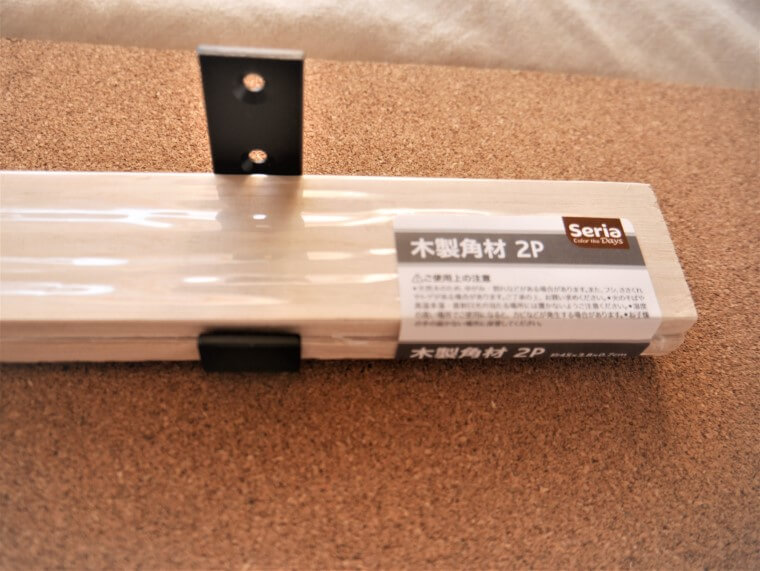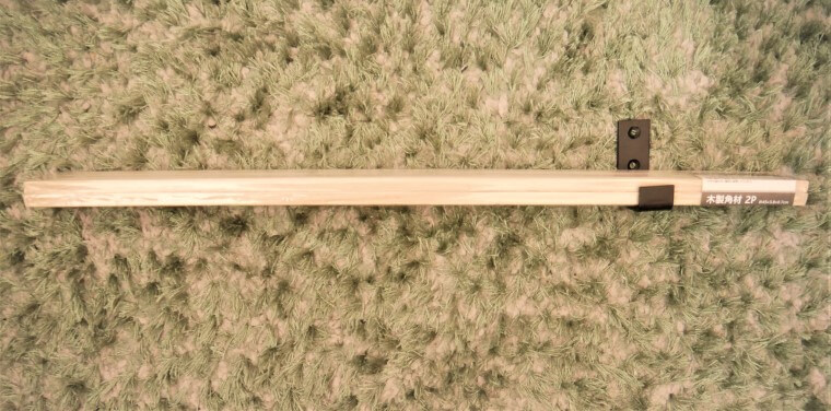 セリア木製角材2P(長さ約45×幅3.8×厚さ0.7㎝)がカットなしでJUSTサイズで乗る幅なことです。