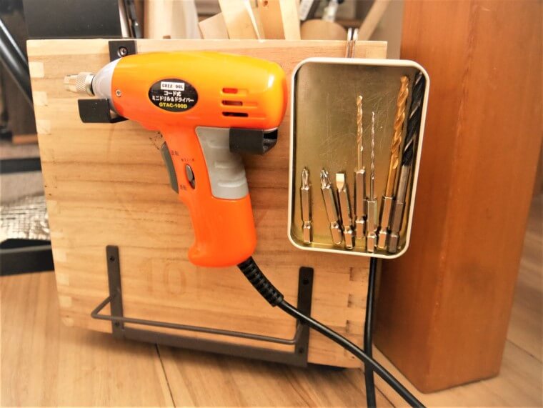 セリア木箱のロングタイプのものを、工具入れの一種として使用しています。