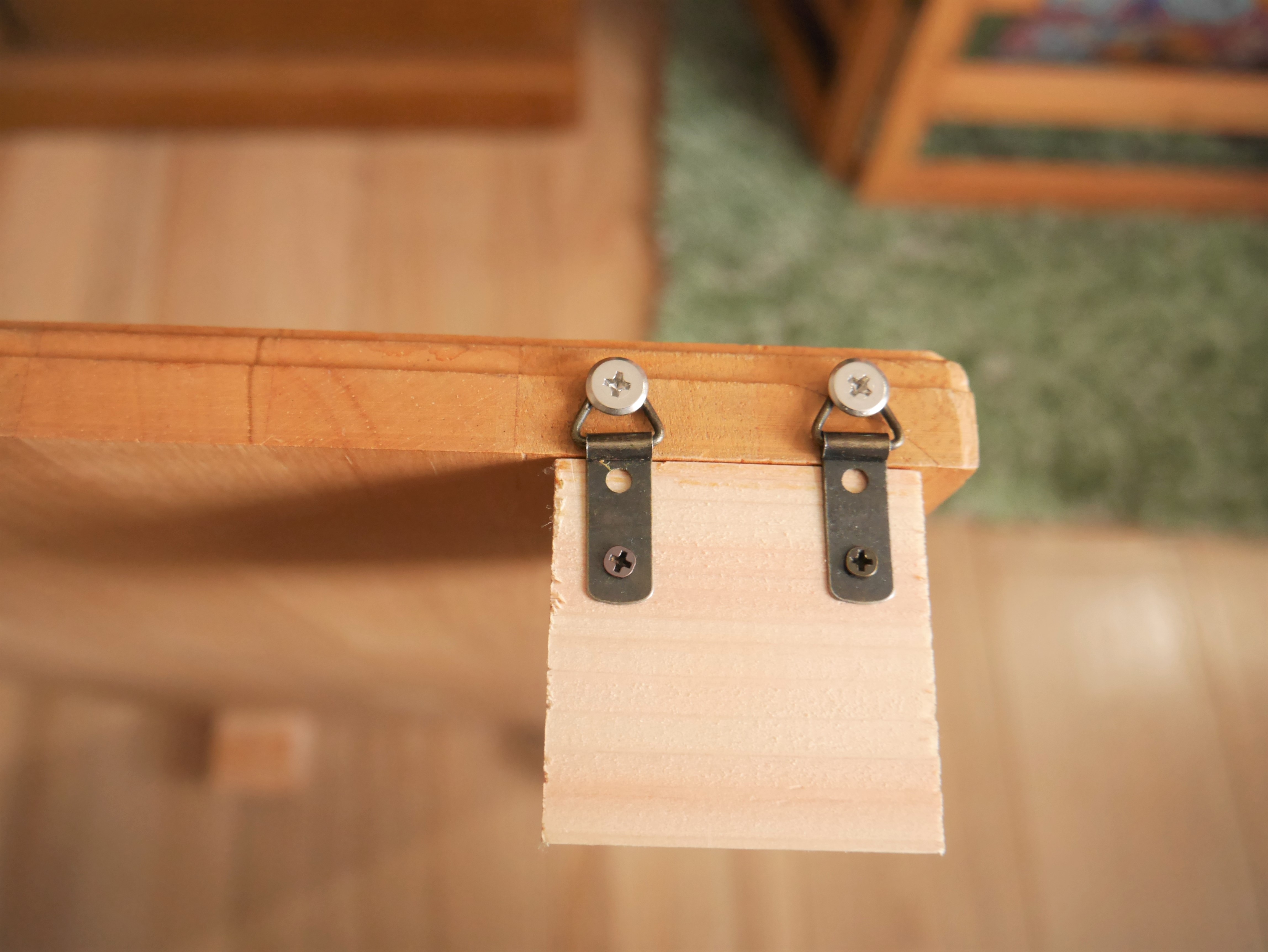 L字金具接合でもよいし、いっそ壊さないことを前提に木工ボンド接着でも安定感を出せますね。