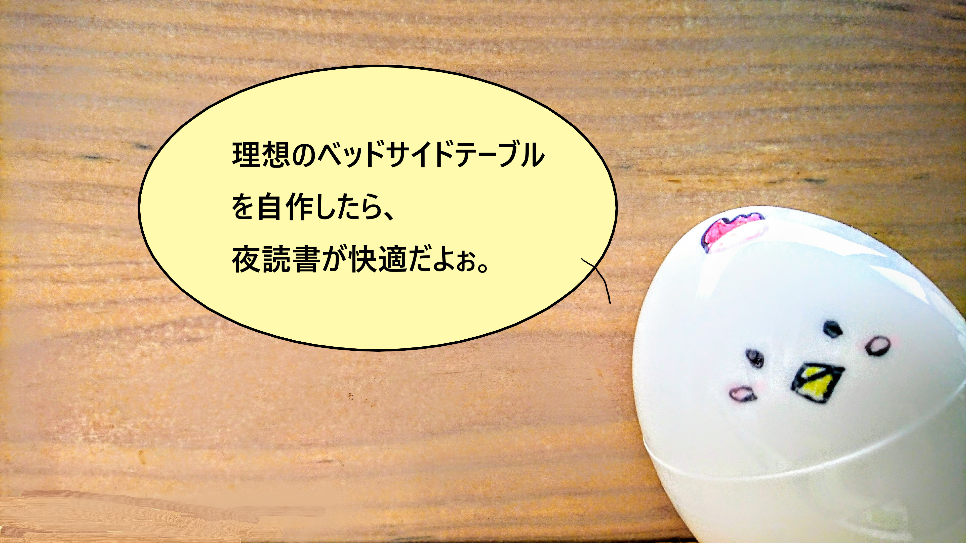 今回、狭い我がベッド脇で利用できるベッドサイドテーブルを自作しました。折りたたみ可でコンパクト、ベッドで就眠前の使用にちょうどよい高さのテーブルができ、とても便利ですので、紹介させてください。