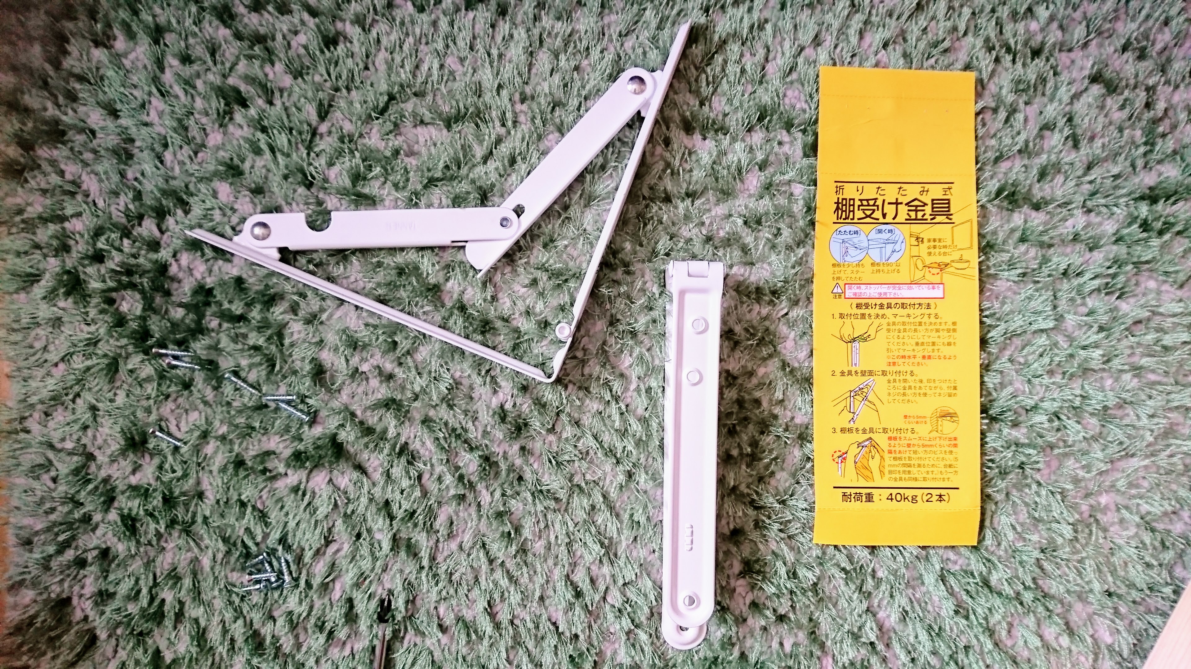 折りたたみ式棚受け金具 荷体重40㎏です。