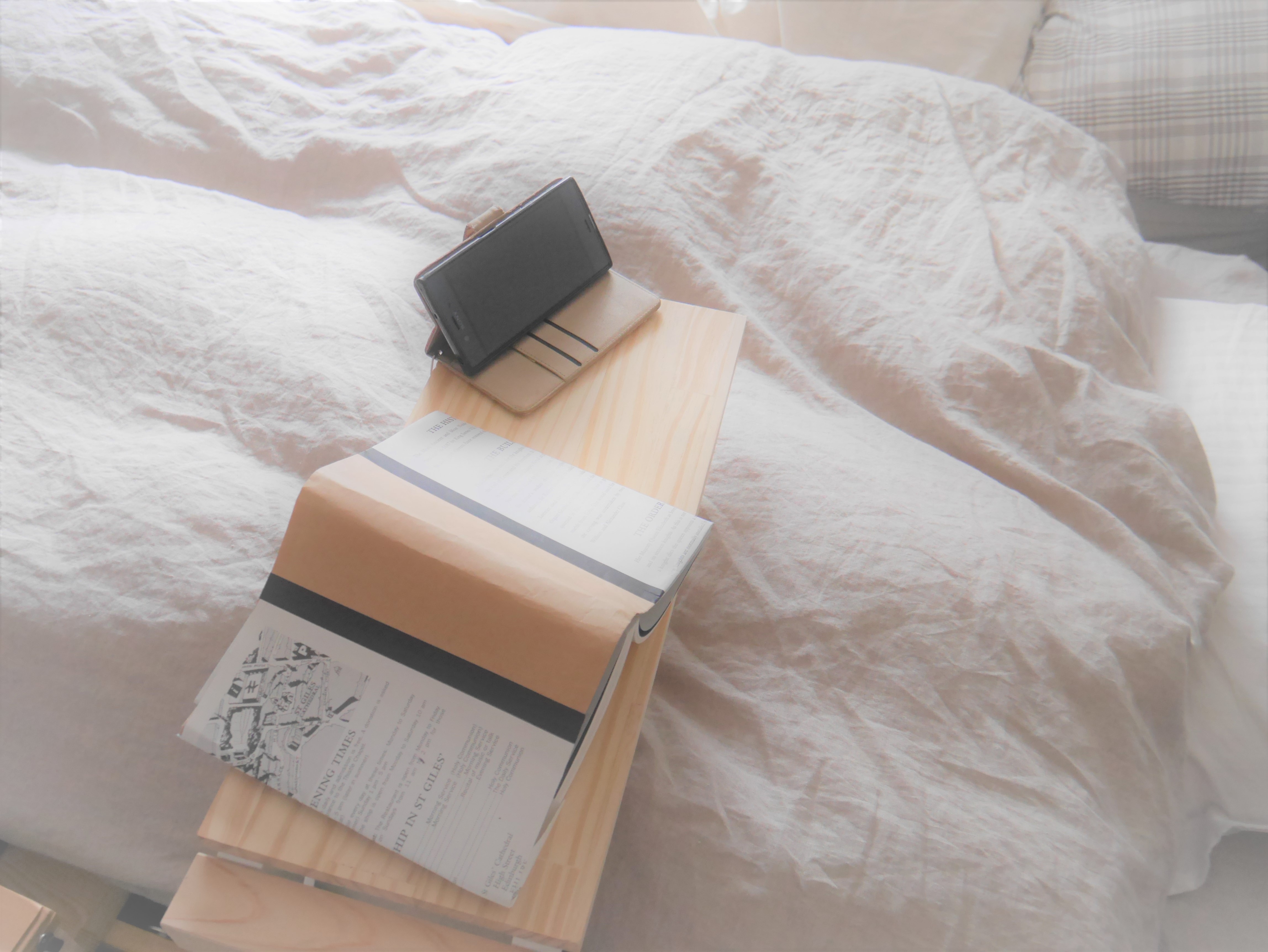 「ベッドで本を読むのに、スマホ置きに、ちょうどよい高さのテーブルが目の前にあったらなぁ…。」