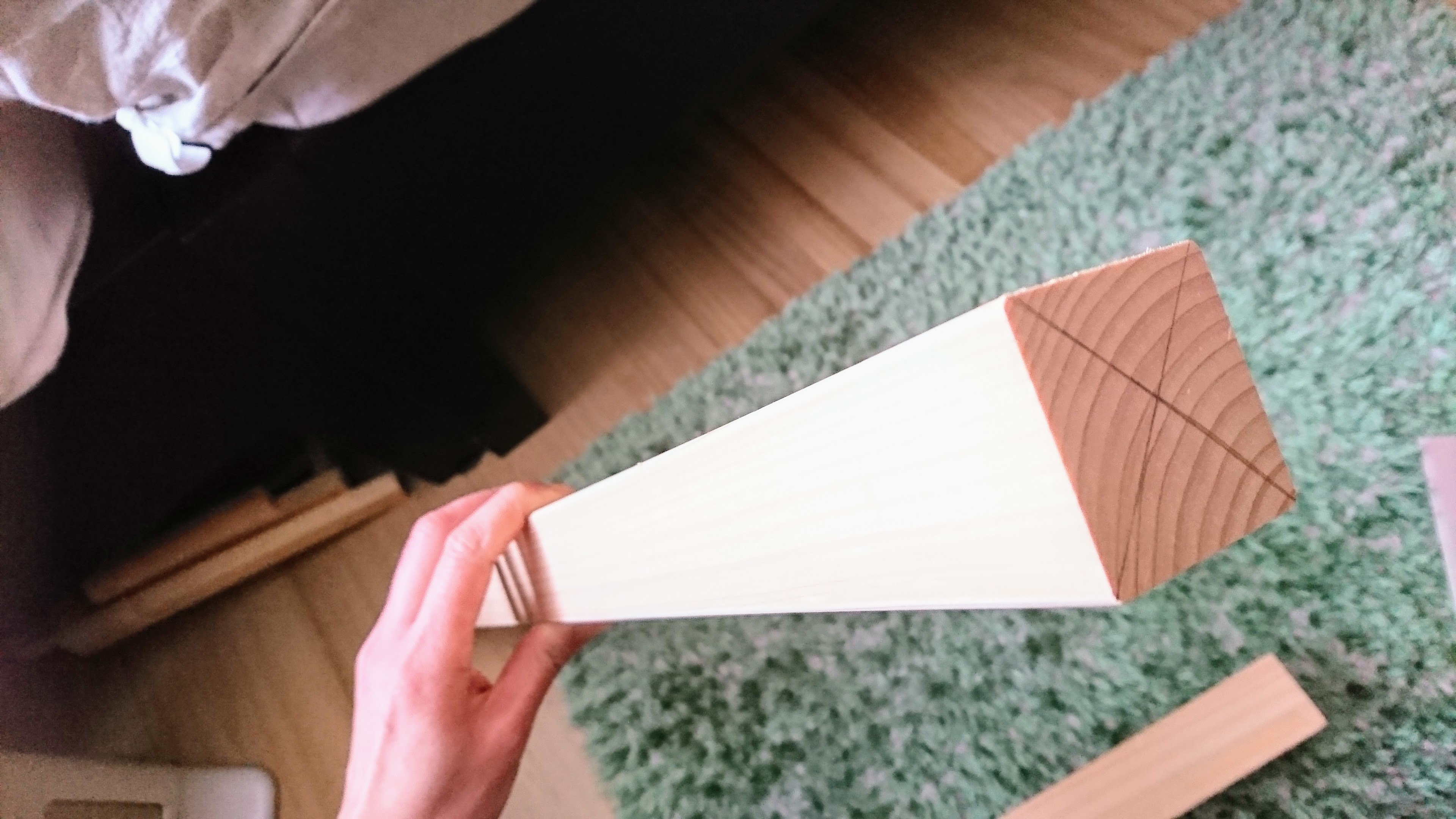 スリムさは失われますが、丈夫さは受け合いな、二本脚の木製角材でつくることに。