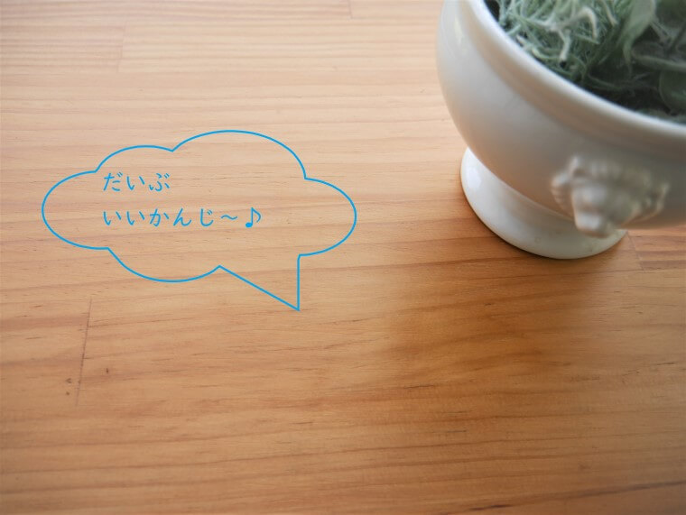 今回の『木製テーブルの輪染みを消したい|サンドペーパーでやすりがけのコツ』編は、このへんにて終了させていただきたいと思います。